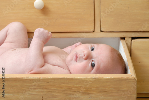 Bebe Couche Dans Un Tiroir D Un Vieux Meuble Stock Photo Adobe Stock
